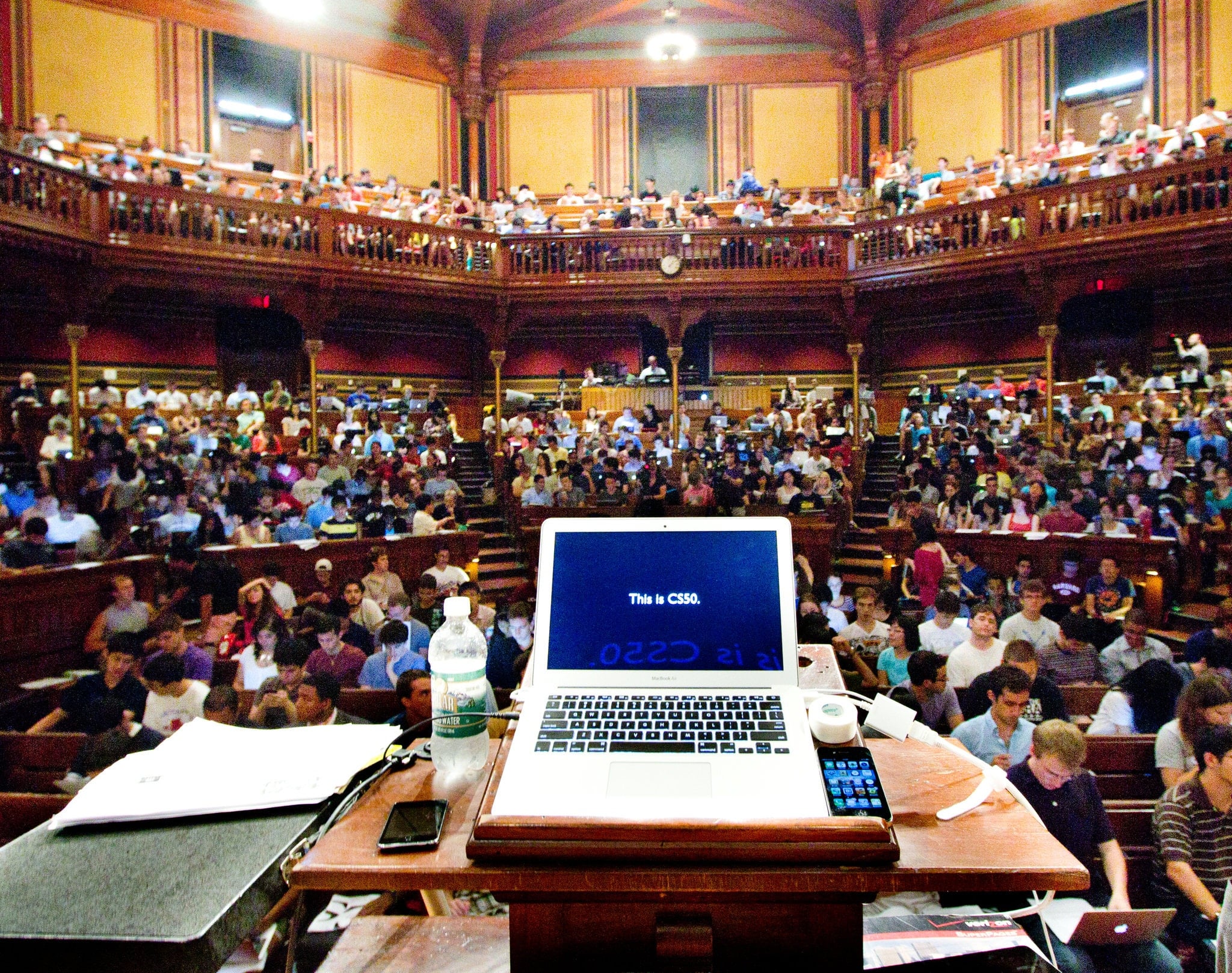 Class experience: Dr. Malan says that he (and a staff of 102) “are really setting out to create not a course for students, but a college experience.” CS50 is popular as a massive open online course through edX, but the real action is on campus. An all-night hackathon is fueled by pizza at 9 p.m., Chinese food at 1 a.m. and pancakes at 5 a.m. Office hours, held in various dining halls, can attract 200. A fair to show off final projects, with cake and balloons, draws 2,200, including parents and busloads of curious high school students. There’s even an online store where you can buy CS50 apparel at cost to show off your course allegiance.