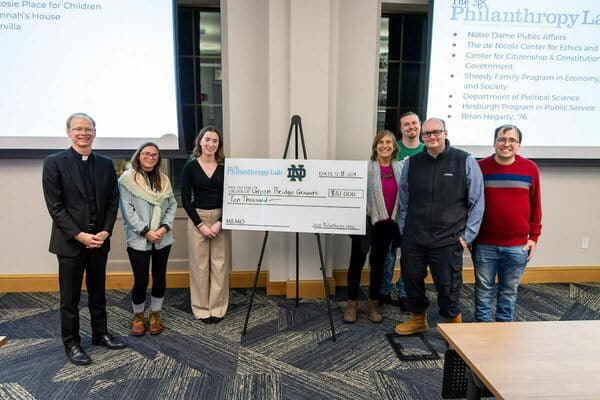At the award ceremony, students presented the checks alongside Notre Dame President Rev. Robert A. Dowd, C.S.C. (Photo by Michael […]