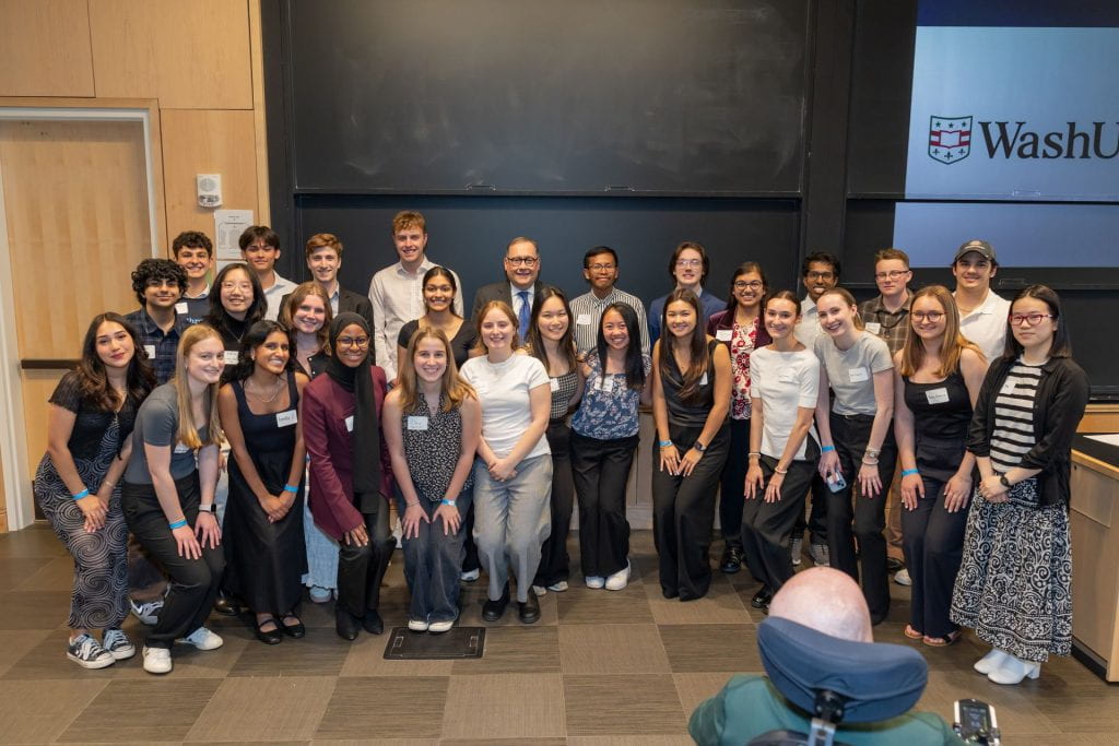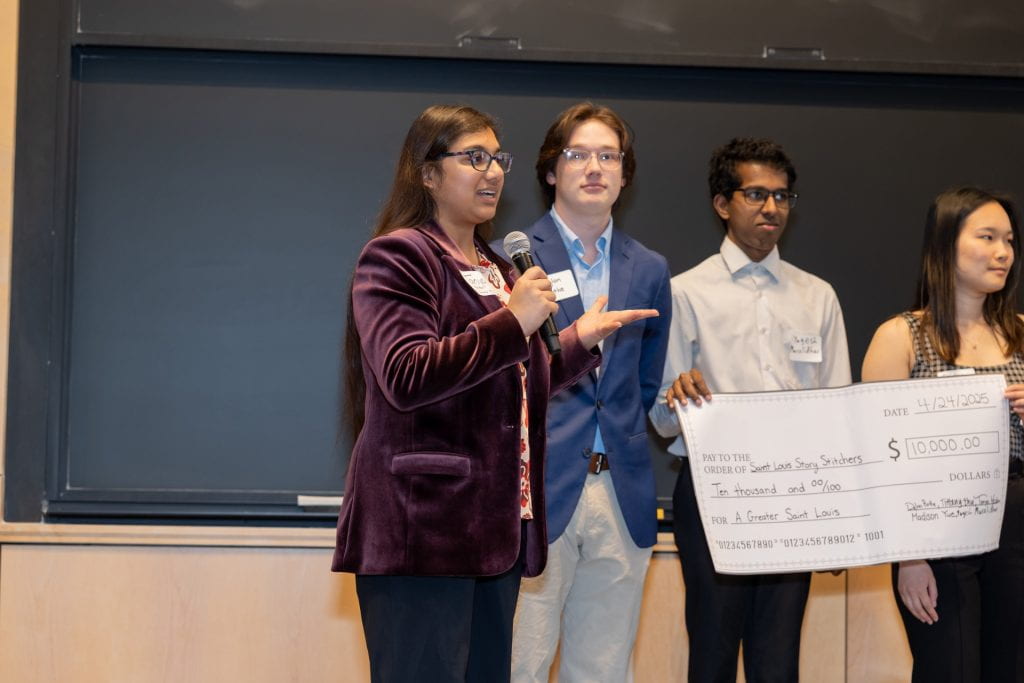 “It is just inspiring to be in a room filled with students and community leaders who are working together to make St. Louis stronger,” said WashU Chancellor Andrew D. Martin to the audience of students and St. Louis community leaders gathered in Hillman Hall. “Through this course, you’ve taken on a real-world challenge, deciding how to invest in the people and organizations making a difference in our community.”